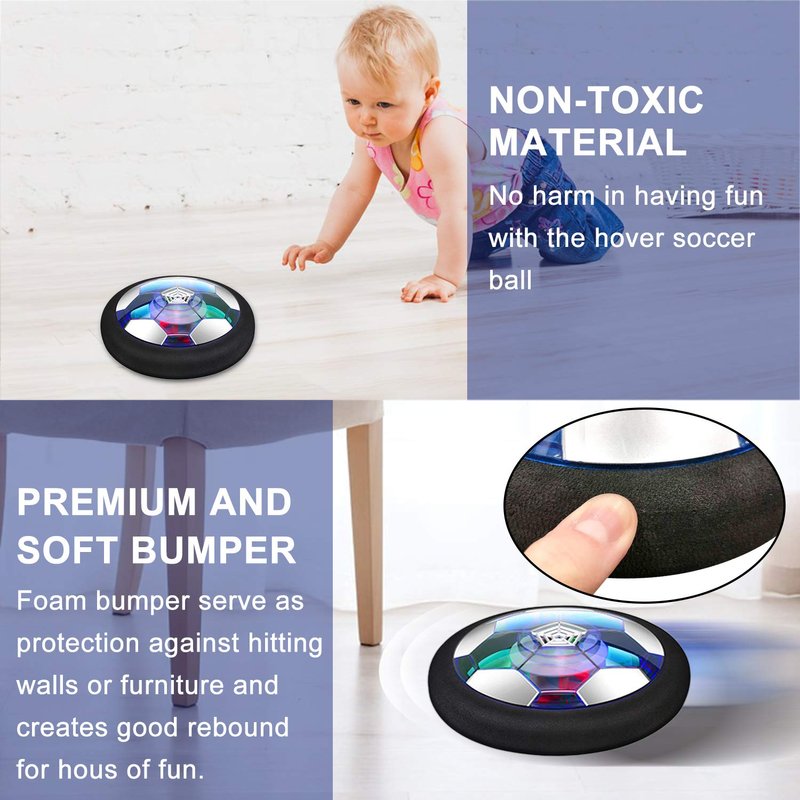 - 【Safety to Play for Kids】This air soccer has quality foam bumpers and soft cushions of foam surrounding the edge of the disc, which makes the ball safe enough for small kids to play with. Meanwhile, it also can protect your furniture and walls from damage, creates a good rebound for hours of fun.