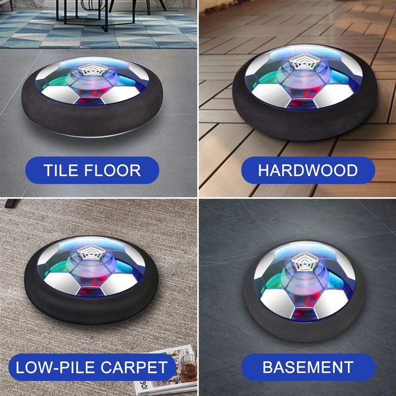 - 【Easy To Glide Over Any Smooth Surface】Pneumatic suspension technology adopted, the hovering ball can float on a cushion of air produced by a powerful fan and built-in rotary motor, which makes this ball easy to glide over any smooth surface. Like low-pile carpet or hardwood, even the unfinished basement, into an indoor court where kids can burn off all their excess energy, and you don't need to worry that it scratches the floor.