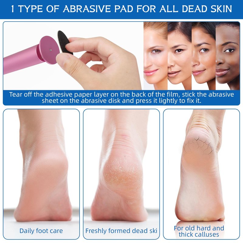 - 60 pieces of replacement sandpaper discs: Our electric callus remover comes with 60 pieces of replaceable sanding pads. Use our foot callus remover tool to remove calluses and dead skin, making your feet more delicate without worrying about insufficient supplies.
