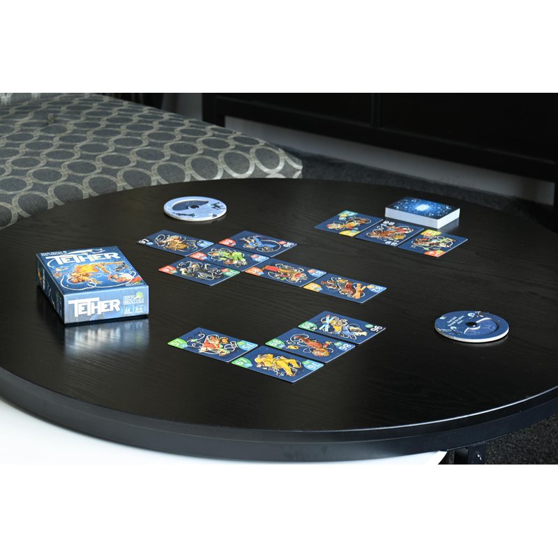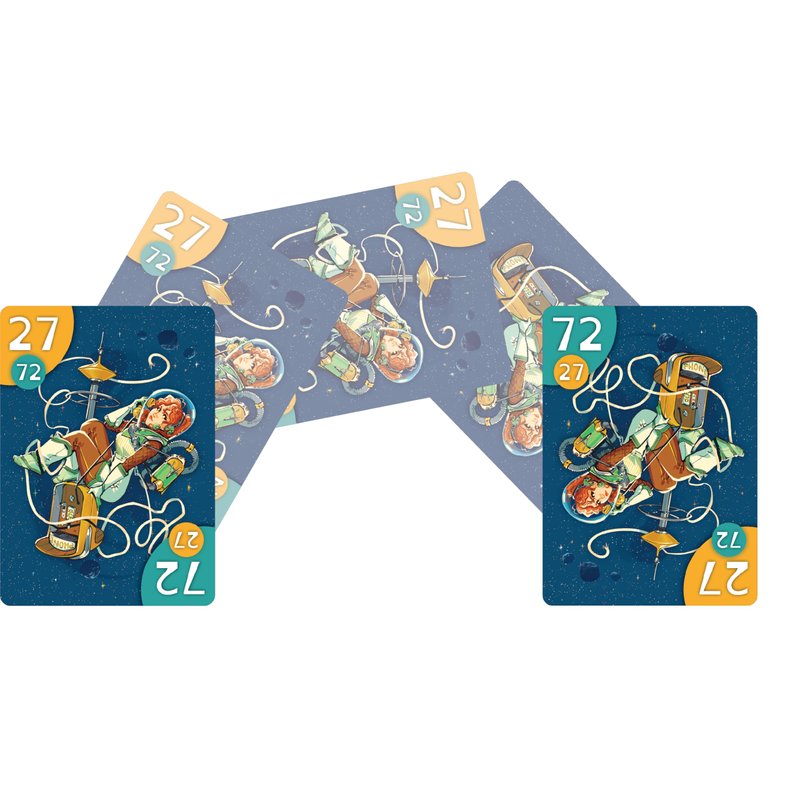 Which way is up when you're drifting in space? With Tether's unique mirror deck your "up" is not the same as your opponent's. 97 to you is 79 to them, giving completely different options for where to play. Can you see the world from both their perspective and your own? Can you wrap your mind around it and tether the most astronauts to win?