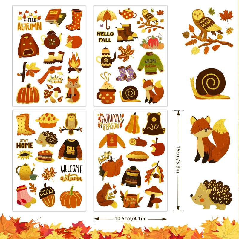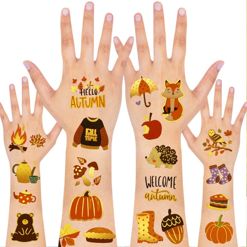 - Buy with Confidence: Any problem of Autumn Temporary Tattoo please feel free to tell us. More fall party decoration such as fall table centerpieces, welcome autumn party decoration set, fall label stickers, fall party tablecloth, thanksgiving gift bags and etc. please visit HOWAF storefront!