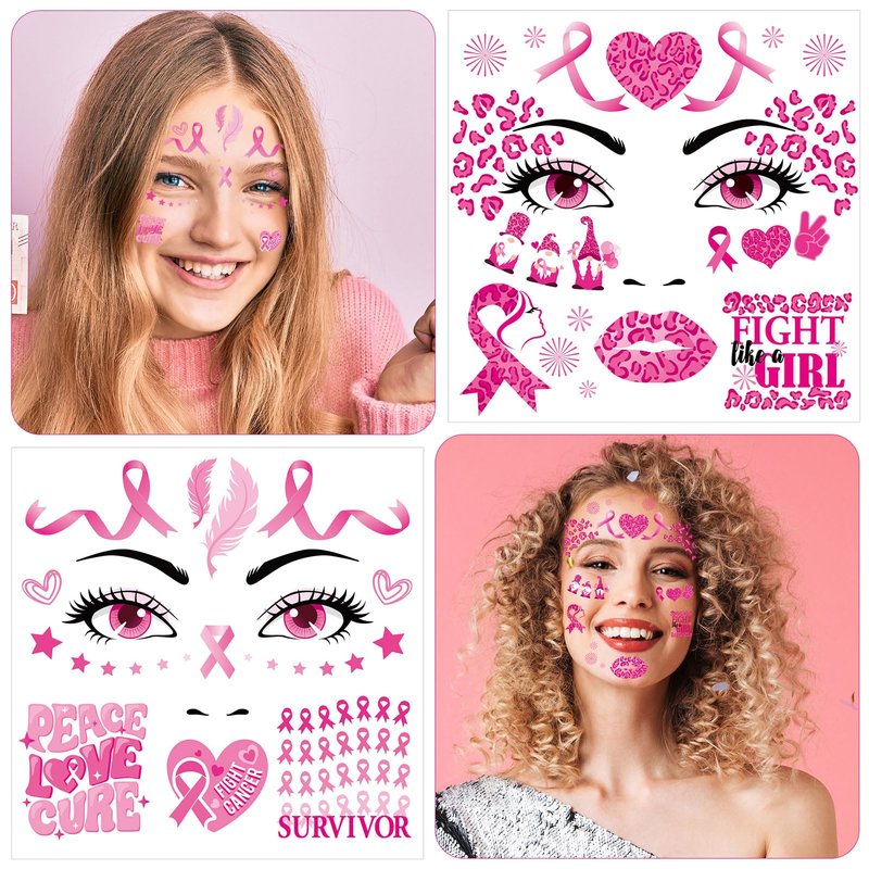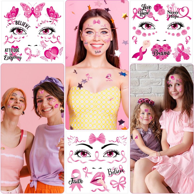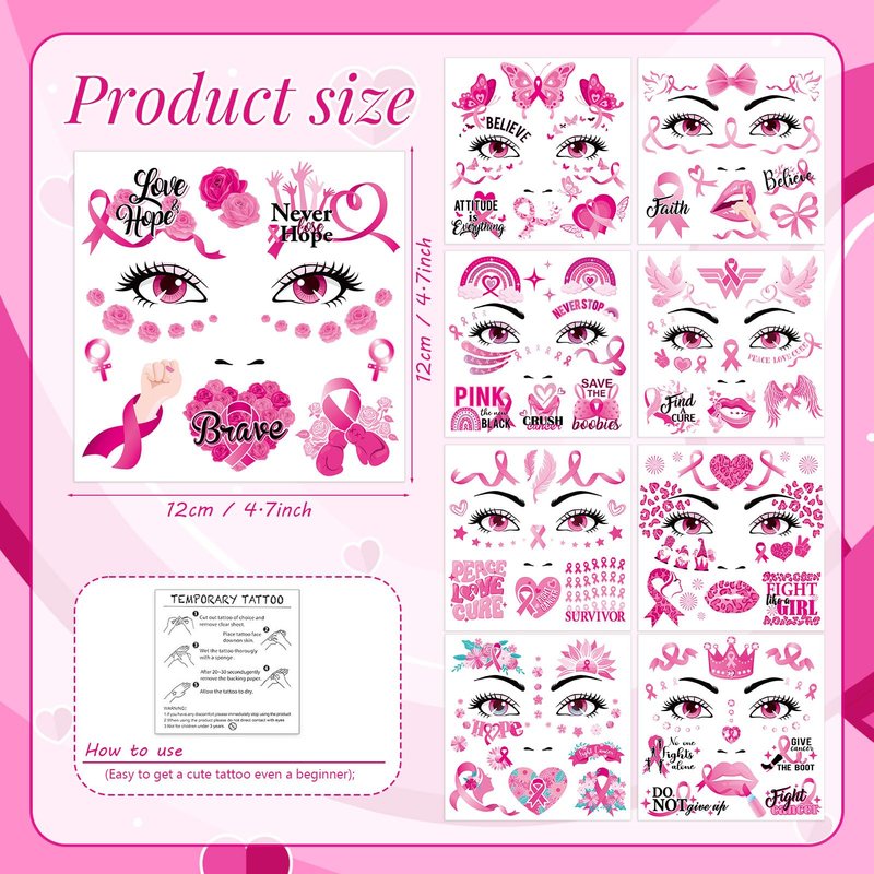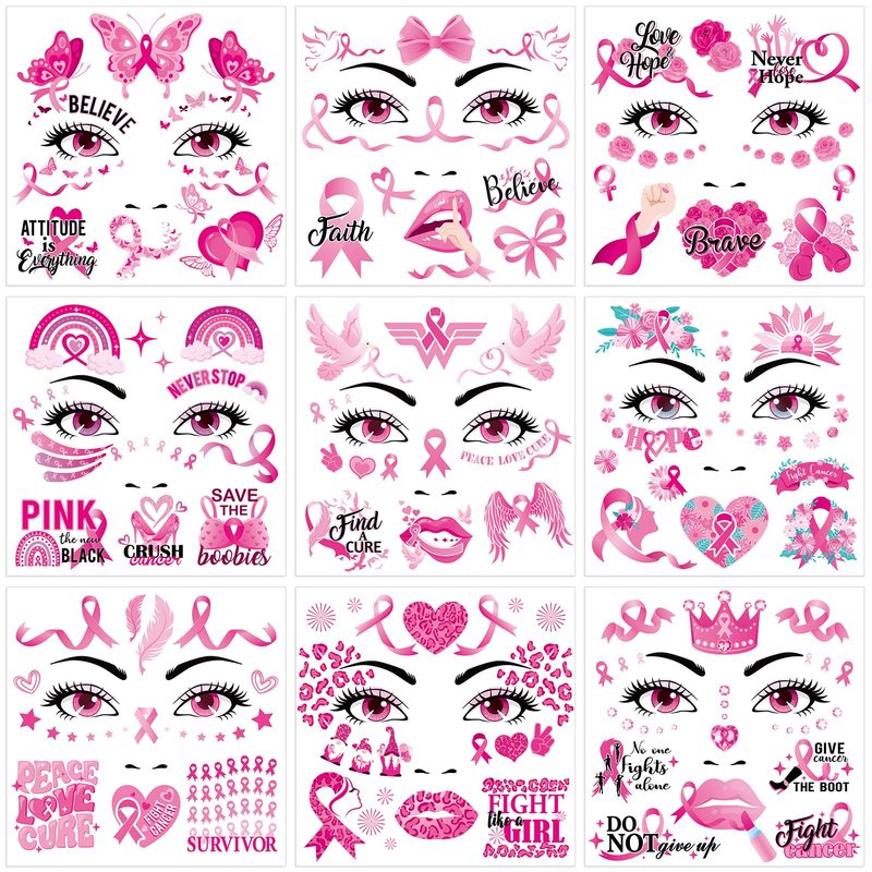 - Breast Cancer Awareness Temporary Tattoos Stickers Include: You will receive 9 sheets Hope Fight Breast Cancer theme tattoos stickers with 9 sheets different patterns. Breast Cancer Awareness face tattoos has pink as its main color and contains many elements to fight breast cancer.