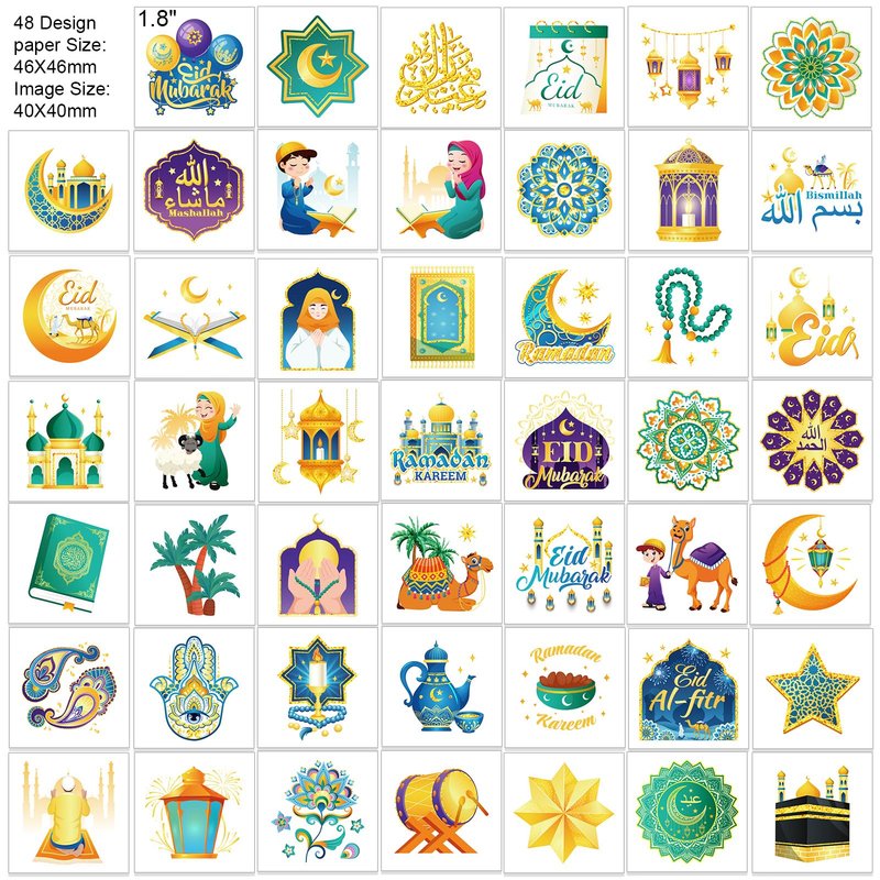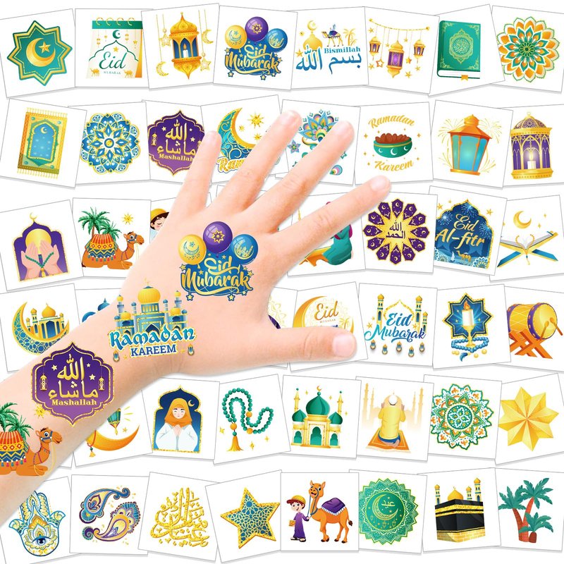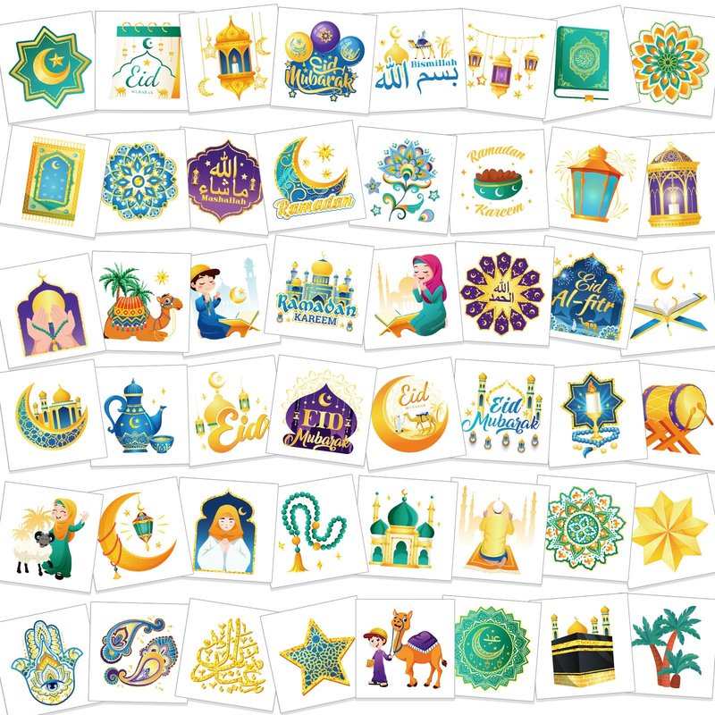 - Eid Mubarak Temporary Tattoos for Kids: You will receive 96 pieces Ramadan tattoos with 48 styles design, featuring with classic Ramadan Kareem party patterns like include moon, star, lanterns, castle, and so on Eid Mubarak day celebrating designs, look shining, enough for you to share with families and friends during on Eid party celebration!