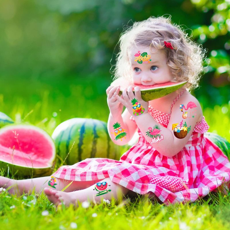 - Easy To Apply And Remove: These summer party temporary tattoos fake tattoos flamingo stickers can long last for 3-5 days, perfect for your pool party, Hawaii party and summer vacation party celebrating decor supplies, waterproof and non-toxic. Summer party face tattoos can also be easily removed with baby oil, alcohol, olive oil, you can change the patterns you like.