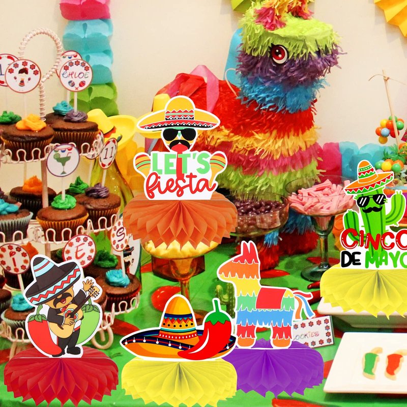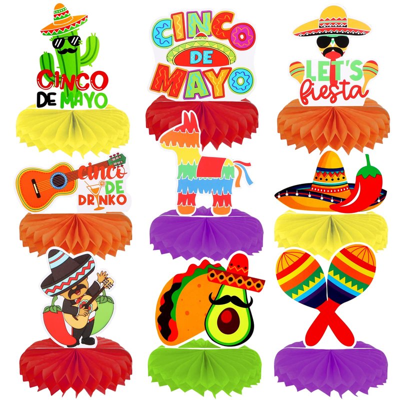 - Mexican Themed Centerpieces for Table: You will receive 9 pieces fiesta party honeycomb centerpieces for cinco de mayo party decoration supplies! These Mexican fiesta table centerpieces make your fiesta party more unique and attractive, nice for Any Mexican occasions party favors, creating an ideal Mexican themed party atmosphere!