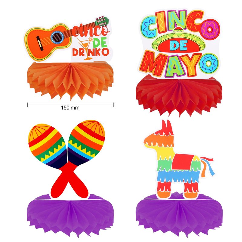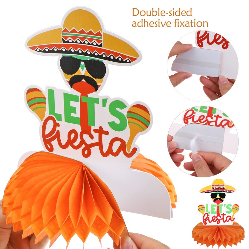 - Easy to Assemble: cinco de mayo centerpieces for table are easy to use, what you need to do is tear off the glue seal tape on the back of the honeycomb ball, open these Mexican carnival honeycomb centerpieces and they will easily form in shape, then stick the cardboard with honeycomb ball, easy to disassemble to storage without taking too much room!