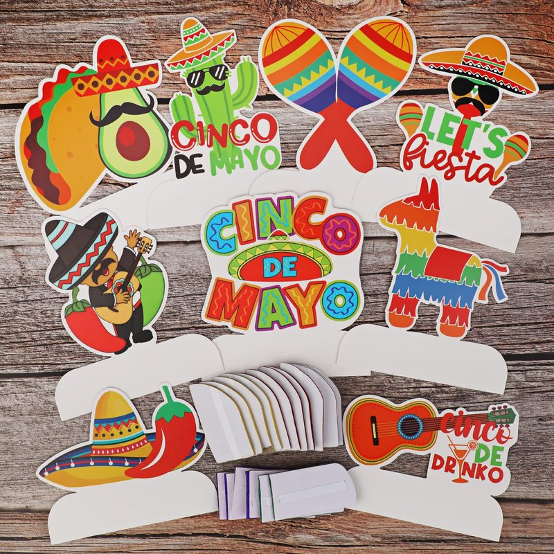 - Classic Mexico Fiesta Element Design:Ready to add a pop of color to a lively carnival party? cinco de mayo party table centerpieces will live up your Mexican taco party decorations supplies! mexican fiesta table toppers feature cactus, chili, pinata, picado, taco, guitar, sombrero, maraca and mustache to show a lively fiesta event and create a Mexican-style atmosphere!