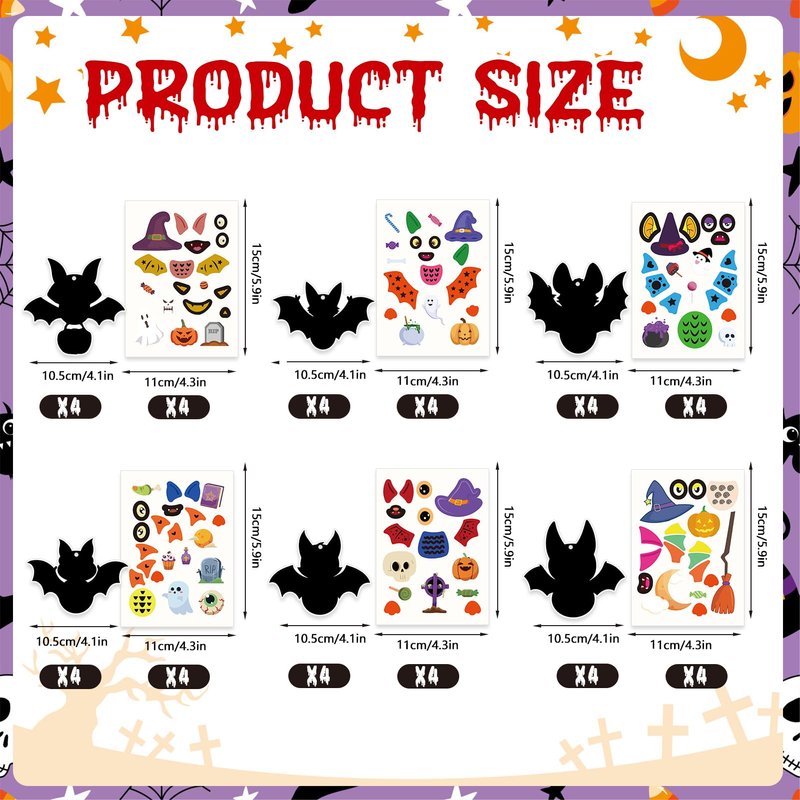 - Halloween Stickers Craft Kits: Package include 24pcs bat paper ornament in 6 different design, Halloween stickers match with various funny facial expression, fit perfectly for bat paper card, you can make their own funny Halloween craft kits, 24pcs bats mix and match card set enough to share with friends and families.