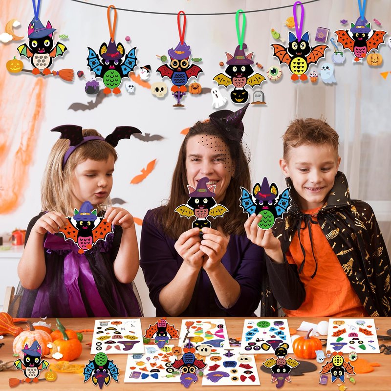 - High-quality Material: Our Halloween craft kits are colourful printed for your families, the Halloween themed bat hanging ornament and stickers are made of double-sided laminated card and sticker, making them tear-resistant, water-proof, no smell and harmless.