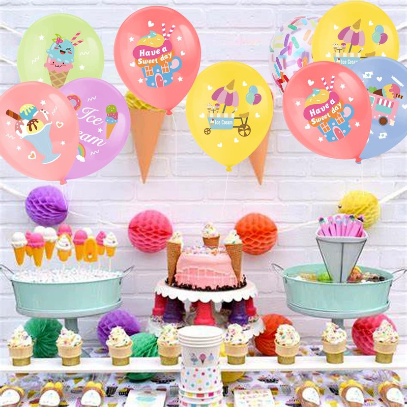 - 【Wide Application】These multi-colored ice cream balloons are suitable for ice cream party/ Ice cream birthday party/ candy land party/ sweet dessert party/ kid's birthday party/ popsicle party/ pool party/ beach party/ baby shower/ Hawaii party/ wedding parties/ baby showers/ bridal showers decoration supplies!