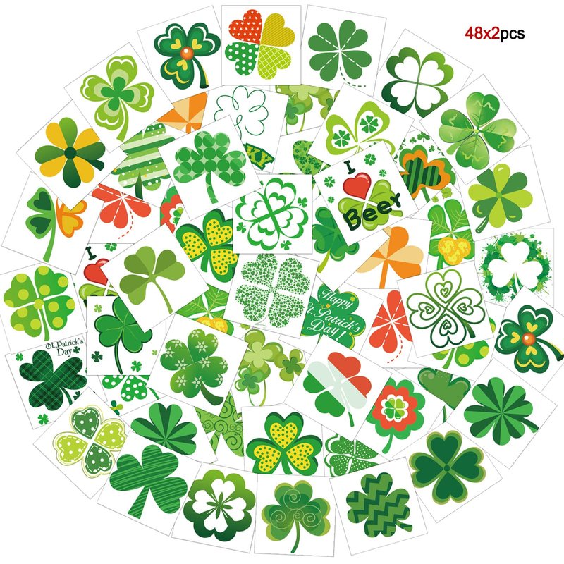 - Great value clover tattoo sticker set: You will receive 96 clover tattoo sticker sets with 48 different patterns! Each tattoo sticker is made into a green clover shape, which is very suitable for St. Patrick's Day decoration. With them, you can get a variety of tattoos to meet your decoration needs!