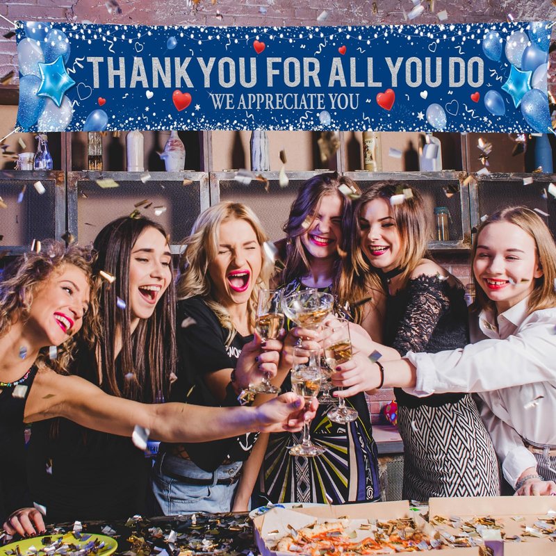 - Wide range of applications: Thank You for All You Do fence banner suitable for all employee appreciation party, suitable for indoor and outdoor use. This pull flag provides a staff teachers doctors appreciation party table decoration for your thank you theme party, and it is also very suitable for your party as a background cloth for taking pictures! You can also hang it on the walls, balconies, branches, gardens, courtyards and other places you want to decorate.