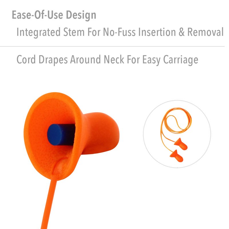 - HIGH-VISIBILITY CORD: Bright orange cord is highly visible to promote workplace compliance; easy draping around neck keeps earplugs off ground to help promote better hygiene and prevent misplacement