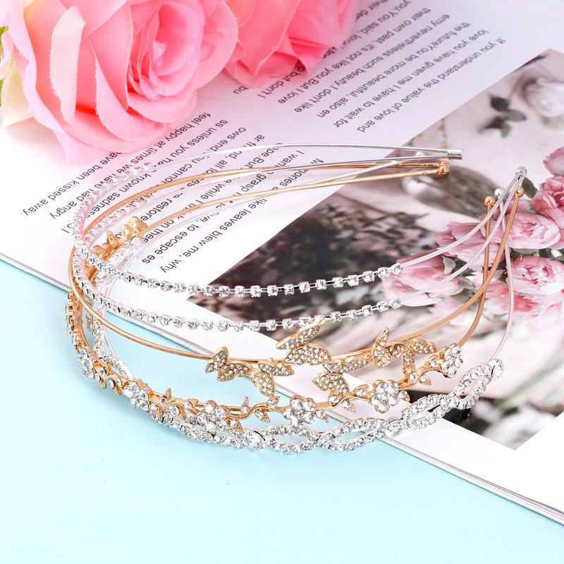 - What will you get: Package includes 1 piece gold butterfly headband, 1pieces gold leaf headband, 1piece silver double rows rhinestones headband, and 1 piece silver double row cross crystal headband, pieces sparkle headbands in total. Different designs and styles to match your outfit and personal preference.
