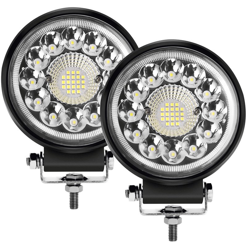 4.5 inch round led light bar, with 150° flood + 30° spotlight for super bright working night. Besides, it can be widely use as round led offroad lights, round fog lights, led work light for truck, led off road lights, led flood lights 12v, led vehicle lights, led driving lights, led tractor lights, led fog light for truck, round led fog lights and etc. It fits for utility four marine suv golf cart forklift pickup truck lawn mower construction motorcycle RZR trailer dirt bike.