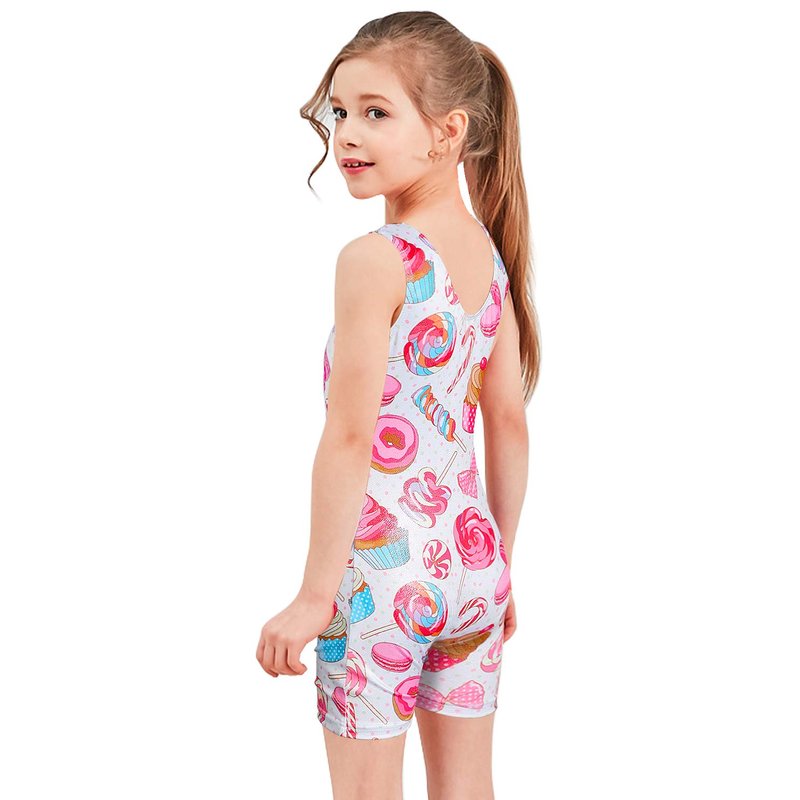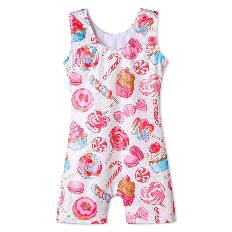 HOZIY Gymnastics Leotards for Girls 4t 5t Pink Candy Cake Lollipop Biketard Sweet Kids Unitards