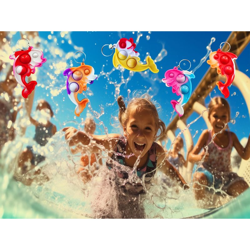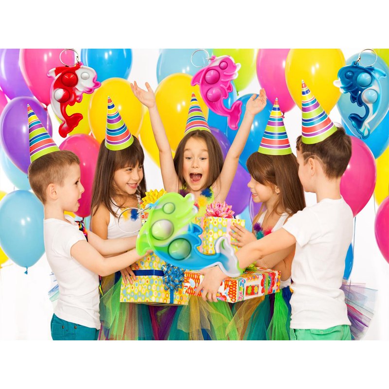 HOZKEAP 100 Packs Bulk Dolphin Fidget Bubble Mini Pop key chain, for Adult and Kids,Birthday Party Favors Supplies gifts Classroom summer Students Bubble Prize