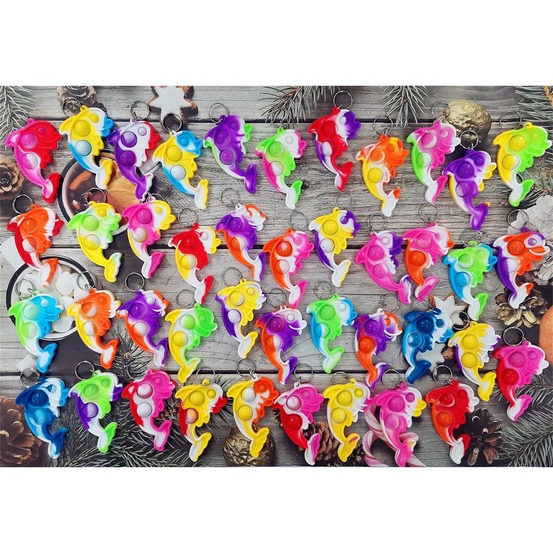 100 Packs Bulk Dolphin Fidget Bubble Mini Pop key chain