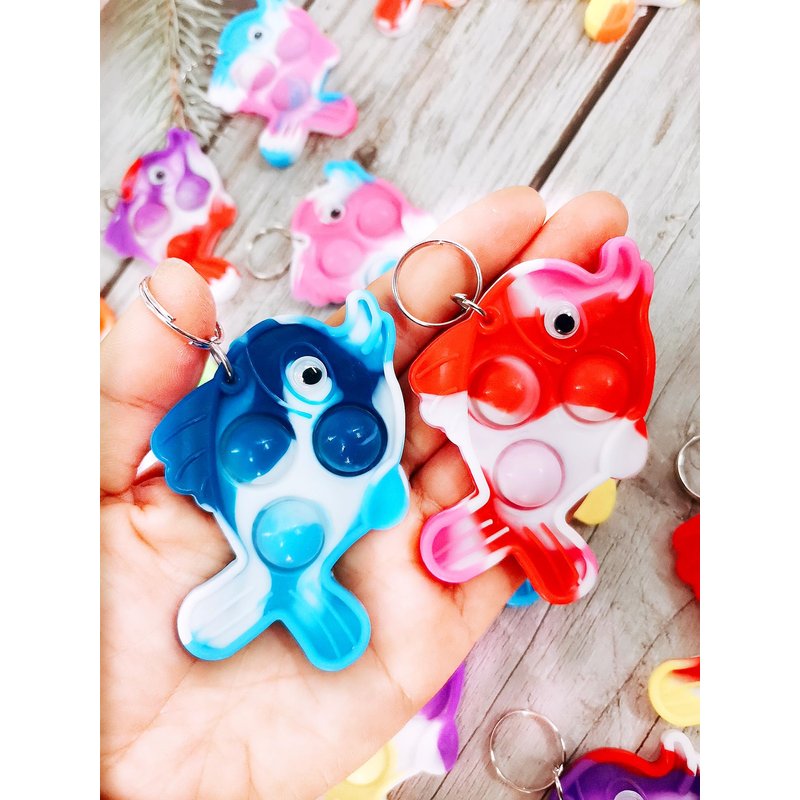 - 2,Made of silicone,package included:20 packs fish mini pop key chains,Random color to send
