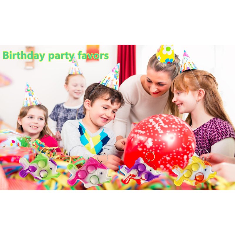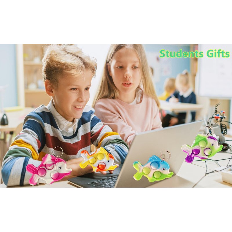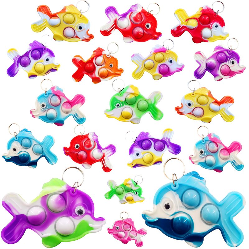 HOZKEAP 20 Packs Bulk fish Mini Pop Fidget Key Chain,Birthday Party Favors Supplies and Classroom summer Student Gifts
