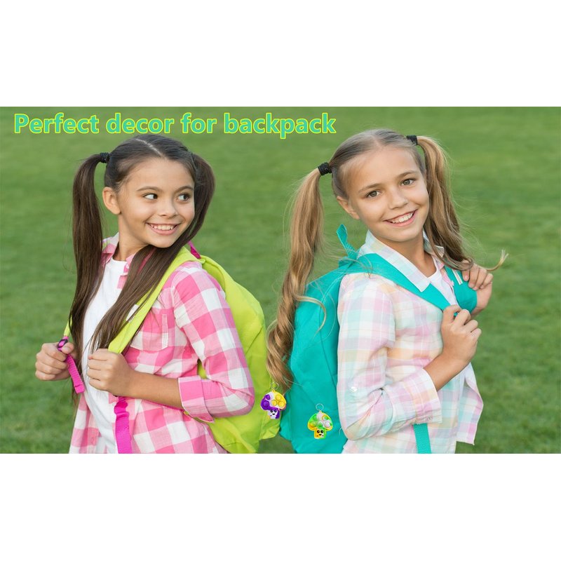 - 2,Made of silicone,package included:24 Packs Bulk Mushroom Mini pop shape key chains,Random color to send