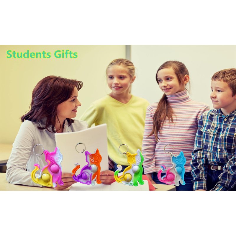 HOZKEAP 50 Packs Bulk Cat animal Backpack Mini Pop Rainbow Keychain fidgets Bubble Toys for Kids Children Classroom Students gifts from Teacher, Birthday Party Favors