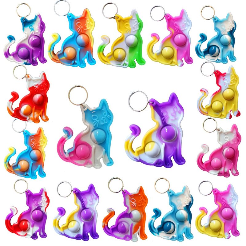 50 Packs Bulk Cat animal Backpack Mini Pop Rainbow Keychain