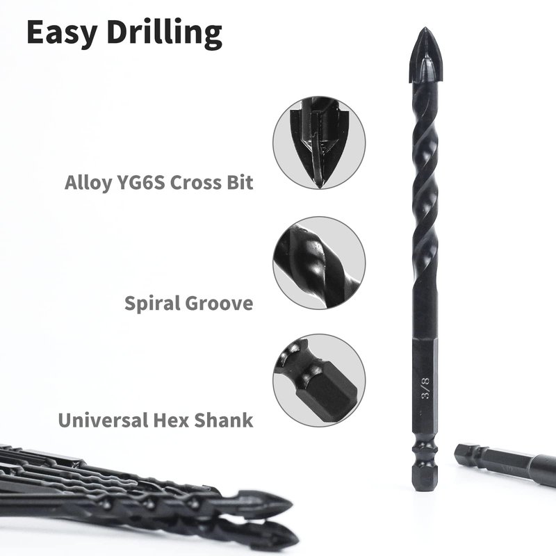 - 【Silky Drilling】Carbide YG6S concrete drill bit set is sharper, double design of cross arrow and spiral groove, precise positioning and easy chip removal, easy to penetrate various materials