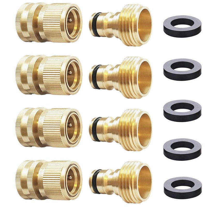 - ★【Standard 3/4 Inch GHT Garden Hose Quick Connect】- You will get 4 brass female connectors +4 brass male connectors+4 free washers.You can enjoy it work perfectly with any standard garden hose,faucets,hose bibs and watering devices.