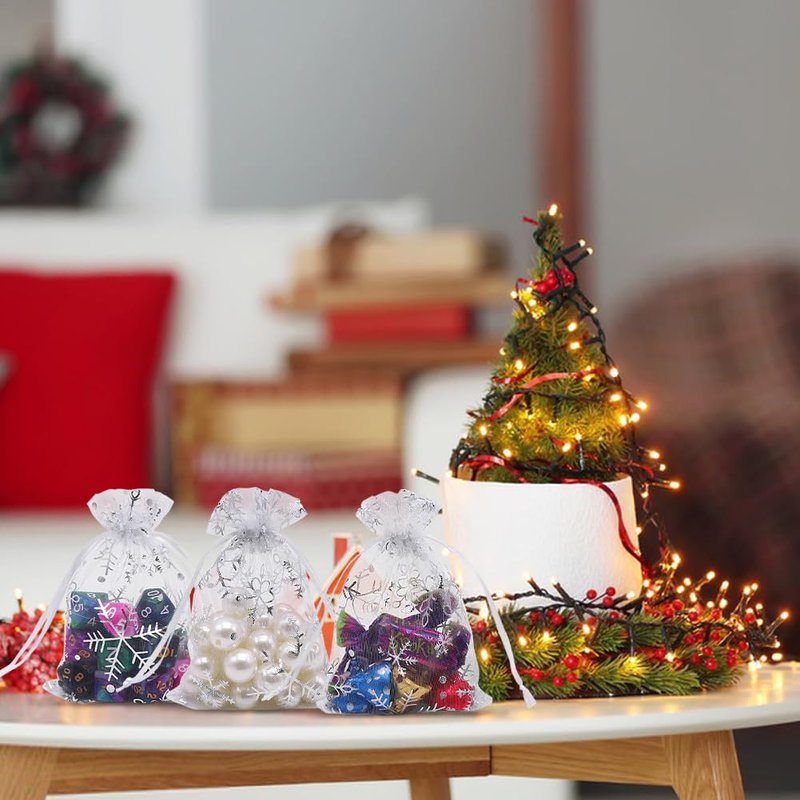 - CUTE SNOWFLAKE DESIGN - These Christmas organza drawstring bags decorated with cute snowflake are easy to close and open