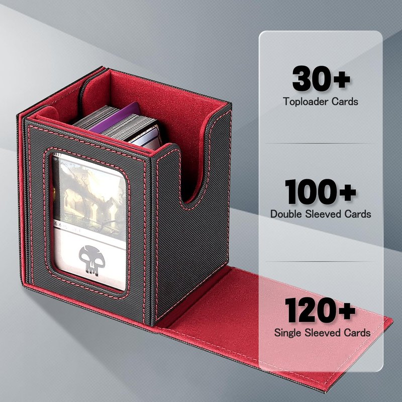 HSMH MTG Deck Box for Commander Display,Deck Box Fits 100 Double Sleeved Cards Applicable to All Card transactions Such as TCC/CCG/EDH (Black Red)
