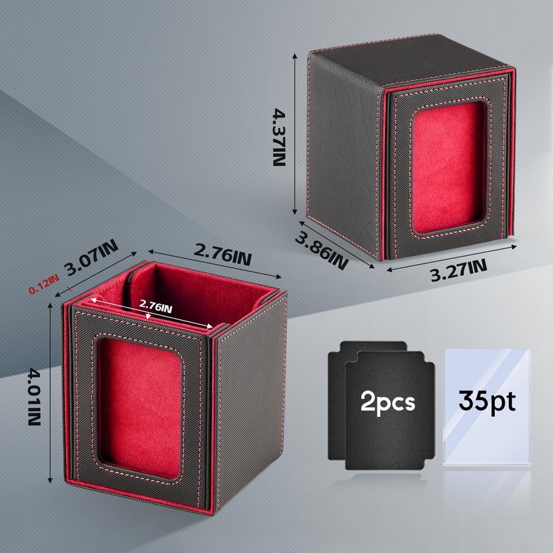 - (Excellent features):Made of sturdy, durable PU leather material on the outside, and soft microfiber lining inside,the external material can have a good waterproof effect, and the internal material containing fluff can effectively reduce damage to the card due to friction and we use magnets, which have strong magnetic force to ensure that the box can effectively protect players' cards from damage or loss even under severe shaking