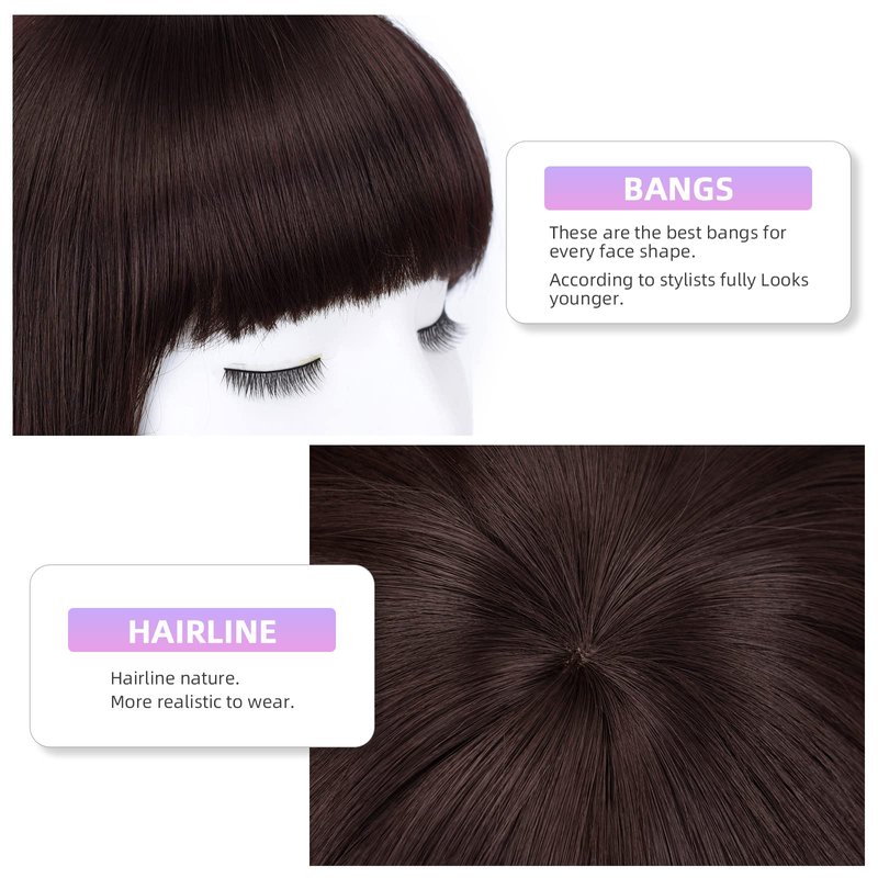 HSPJHTM Brown Bob Wigs,10" Short Bob Wigs,Short Bob Hair Wigs Straight with Thick Bangs Synthetic Colorful Cosplay Daily Party Wig for Women Natural (Free Wig Cap)