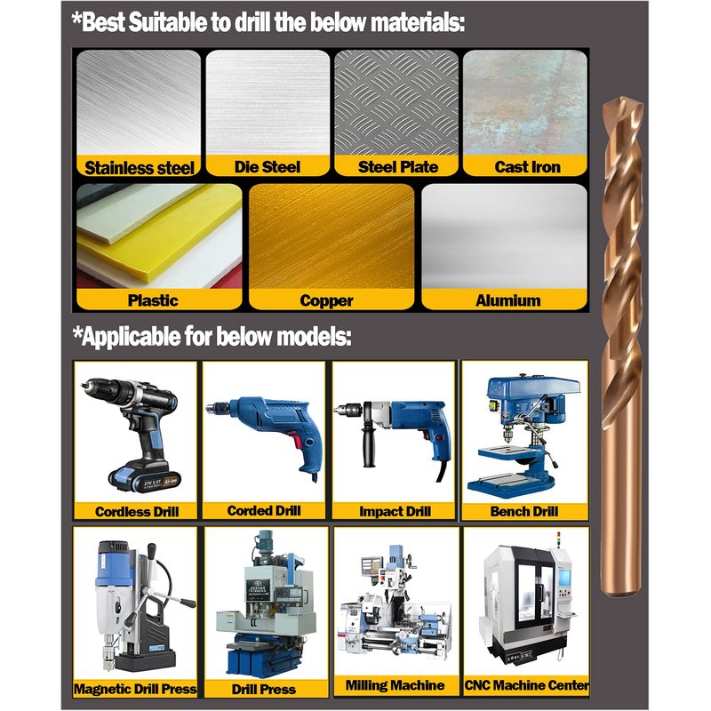 - ✔️ 【APPLICATION】: Drilling Through Stainless Steel, Metal, Steel, Cast Iron, Alloy Steel, Copper, Aluminum, Plastic..