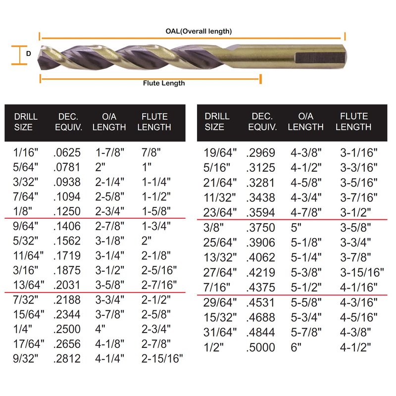 - ✔️【DRILL BIT DIMENSION】:5/16"(Diameter) x 3-3/16"( Flute Length) x 4-1/2"(Overall Length)