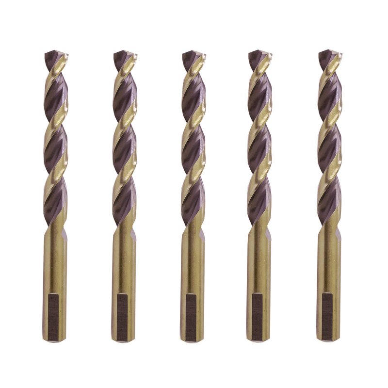 Hss Drill Bits 5/16 in. Jobber Twist Parabolic Flute Golden/Black 3-Flat Shank Drill Steel Metal-5Pcs