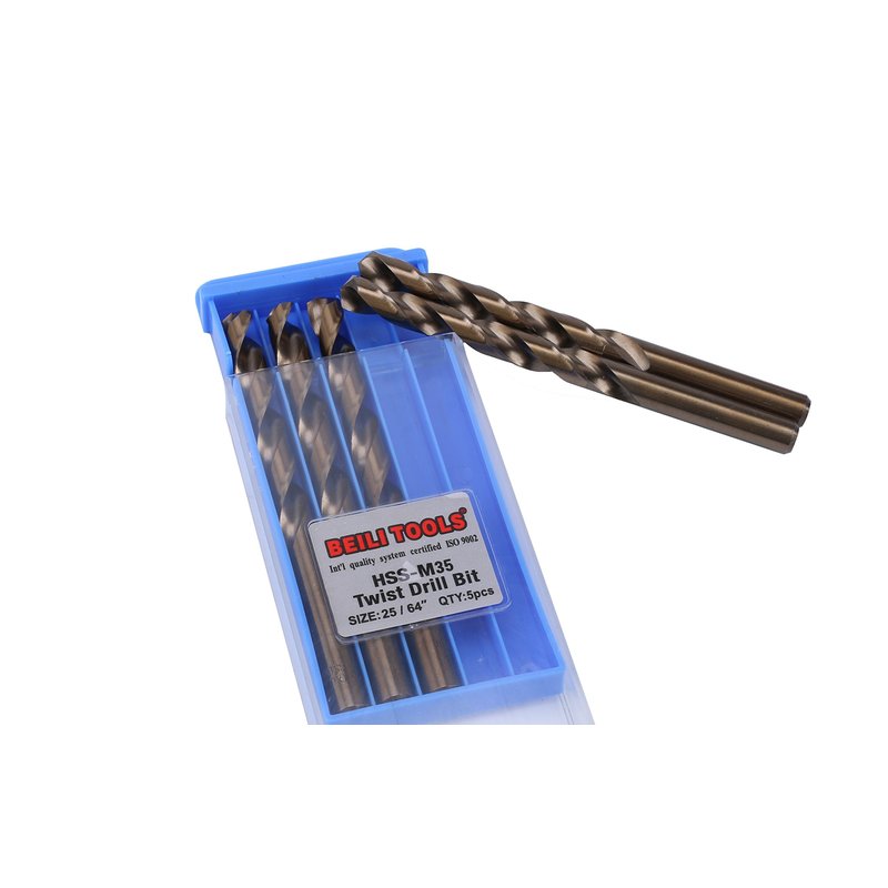 HSS M35 Cobalt Twist Drill Bits, Pack of 5 (10mm, 25/64")