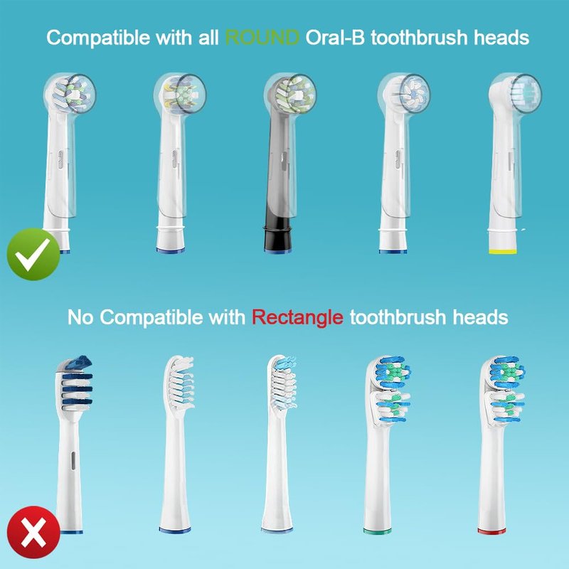 - WIDTH COMPATIBILITY - Compatible with Braun Oral B CrossAction/ FlossAction/ Precision Clean/ Sensitive entire lineup of round replacement brush heads. The toothbrush heads hygienic protective cover / cap also compatible with Oral B Pro 1000/ Smart 1500/ Geniu X/ Pro 100/ Pro 500/ 7500 etc Electric Toothbrush.