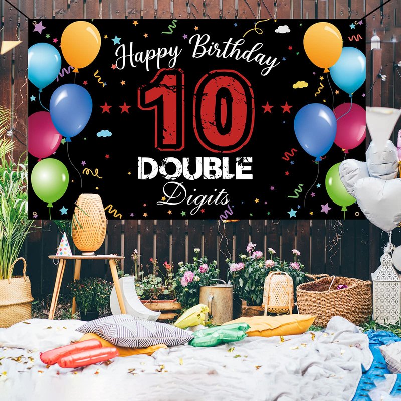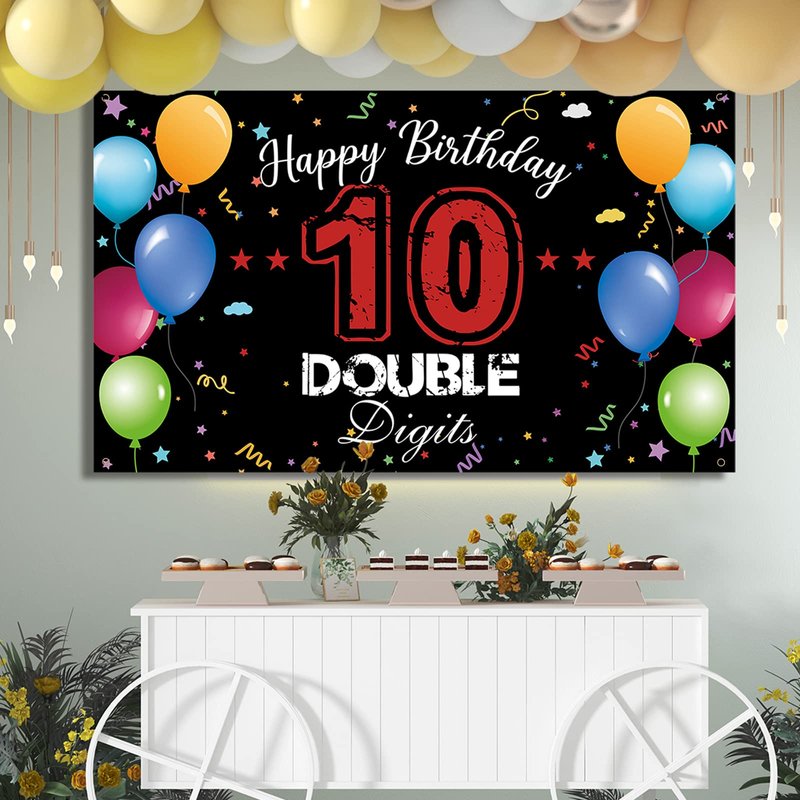 - ✿SIZE : 6.1 FT x 3.6 FT | GREAT DOUBLE DIGITS BIRTHDAY BACDKROP : 1pcs backdrop banner for 10 year old birthday party decorations. 6.1 feet by 3.6 feet (185 cm x 110 cm), with a 20-foot string attached.