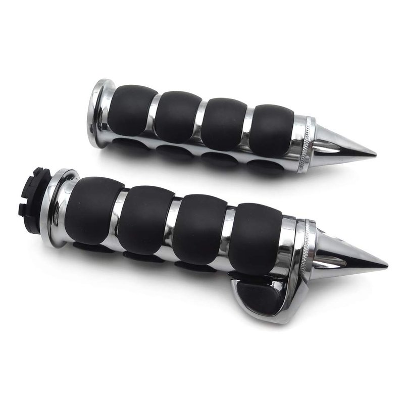 HTTMT TRHB114E-25-CD(114A+312-C) Chrome 25mm 1 inch Spike Handlebar Grips Throttle Boss Compatible with Harley Softail Dyna Sportster Electra Glide/Kawasaki Ninja Hayabusa GSXR700 GSXR1000