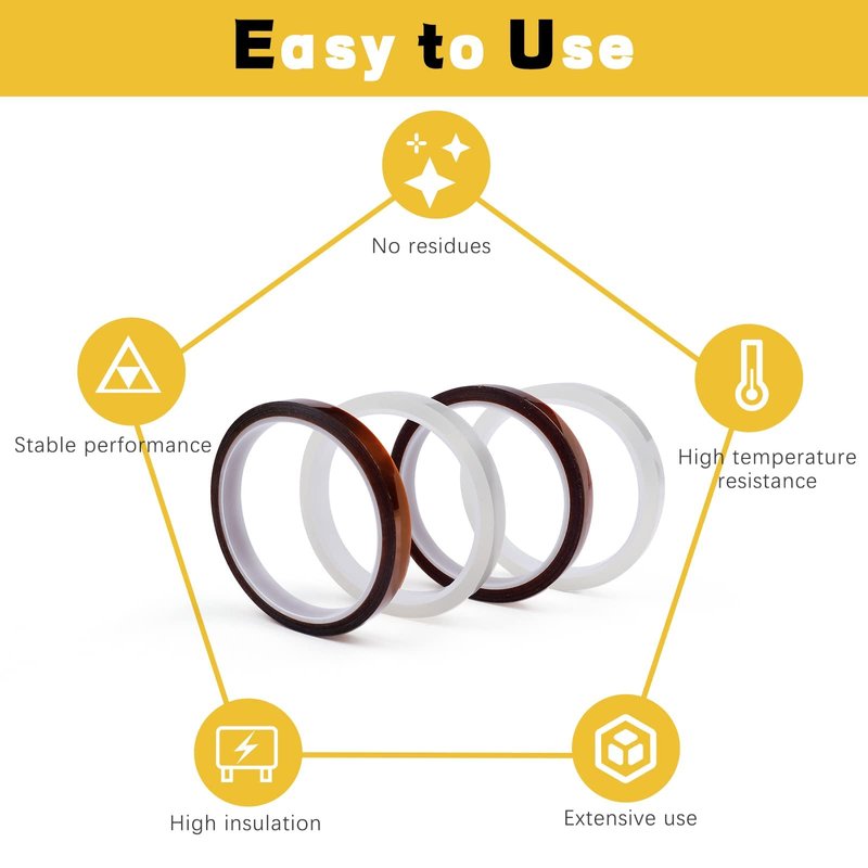 Our heat temperature tape is made of durable polyimide film with strong silicone adhesive. Perfect for various DIY projects and use in electronic products.