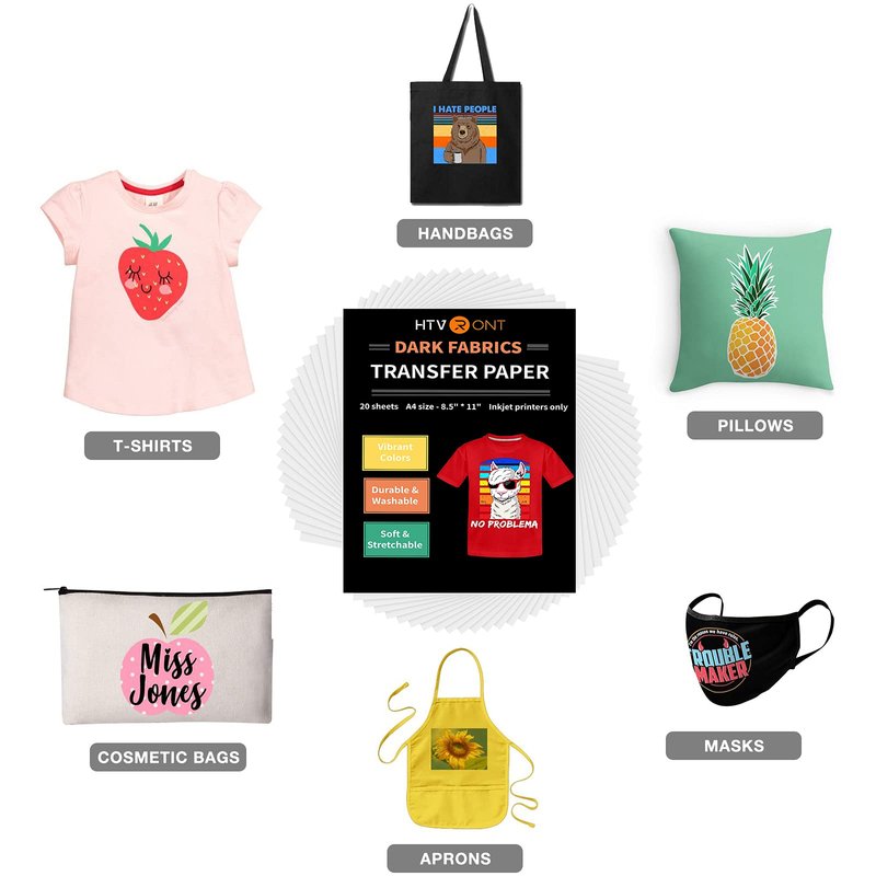 HTVRONT Heat Transfer Paper for T Shirts 20 Sheets, 8.5" X 11" Printable Heat Transfer Vinyl, Vivid Color & Durable Iron on Transfer Paper for Dark Fabric