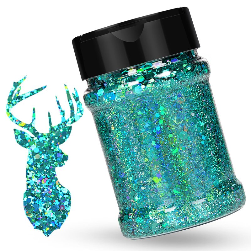 - 【Safe & Durable Chunky Glitters】This peacock blue chunky glitter is made of high-quality polyester, which is recyclable, environmentally friendly. Our holographic chunky glitter is safe to be touched with the skin. And you can easily remove these glitters with water or a gentle makeup remover. This chunky craft glitter also features good durability that is hard to melt or fade and will keep shiny for a long time.