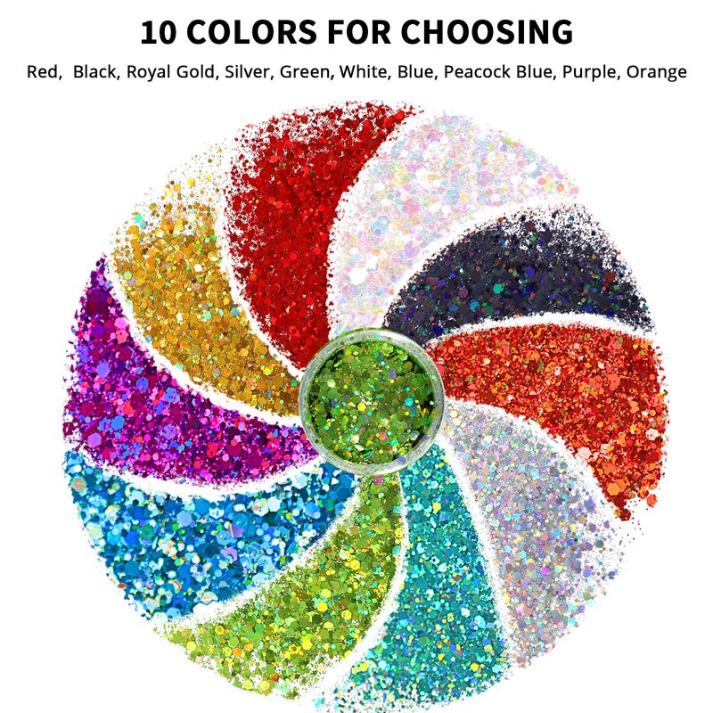 - 【Stunning Holographic Effect】Mixed different size hexagonal sequins and fine glitter, our holographic glitter performs an extraordinary effect different from ordinary craft glitter. This chunky glitter for crafts offers a metallic finish while providing a secondary rainbow finish. It shines differently in dazzling colors in different light angles, taking on a sparkling holographic color. Add sparkle, shine, and texture effects to your projects.