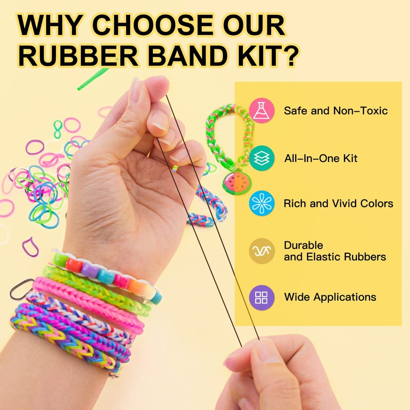 - 💡【HIGH QUALITY & CPC CERTIFIED 】: Our loom bands are made of high-quality rubber resin material, which is Lab tested safe, free from Latex, Lead & Phthalates. Guaranteed Safety for Kids! Besides, our non-toxic rubber bands are Bright colors and Glossy, super Stretchy, and Durable, which is not easy to break! (WARNING: Not suitable for kids aged under 6. Below 6 years old Kids must be supervised).