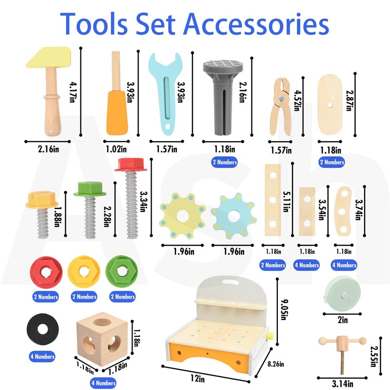 - Educational STEM Montessori Toys: Whether it's learning about colors and shapes or understanding basic construction principles, this versatile educational toolbox encourages a holistic approach to early childhood development. This wooden tool bench is ideal for children to use their imagination! This montessori sensory toys goes beyond mere entertainment, it's a gift that encourages creativity, and quality time with loved ones.