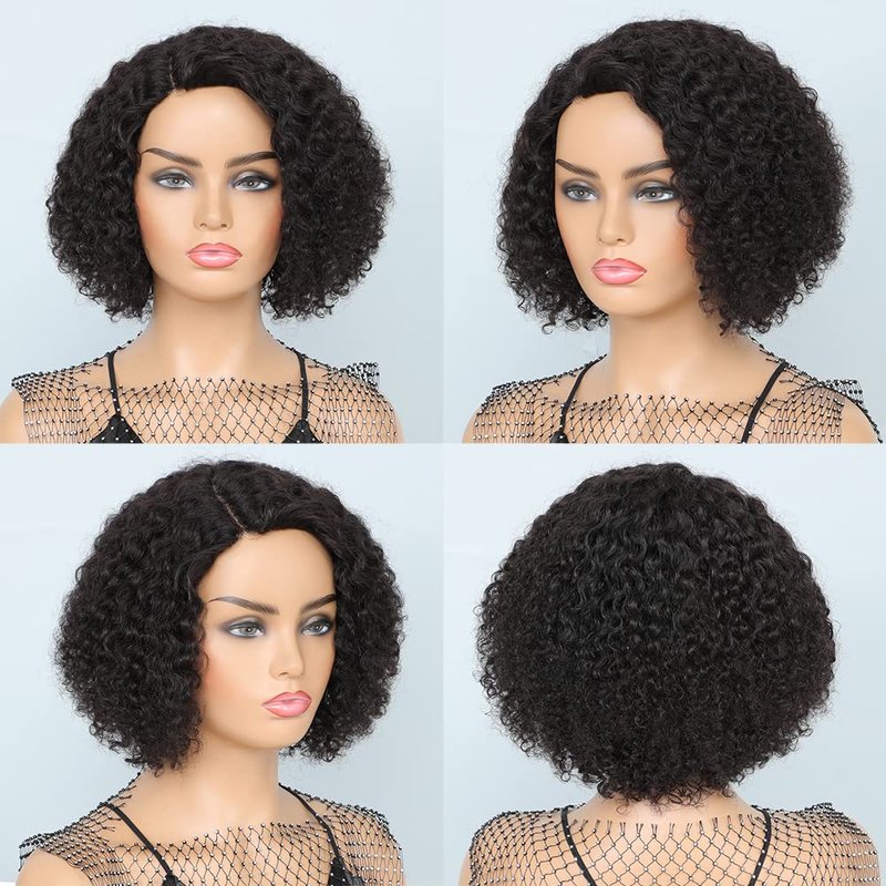 HUA Human Hair Wigs for Black Women Bob Wear and Go Glueless Wig 10 Inch Short Curly Bob Wig Human Hair Glueless Wigs Human Hair Kinky Curly Wig for Black Women I Part Lace Wig Natural Black Color