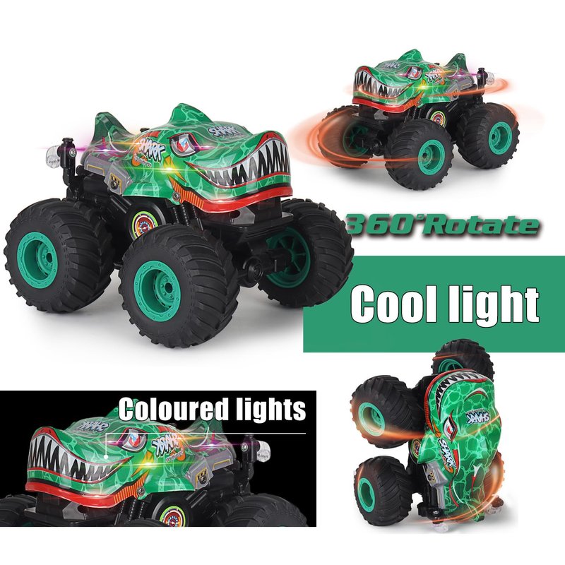 huajuze Remote Control Car, 2.4Ghz All Terrain Dinosaur Monster Truck Toys, RC Truck with Music, 3 Lighting Effects, 360 Stunt Capable, All Included Ready to Run, Toy Gifts for Boys and Girls (Green)