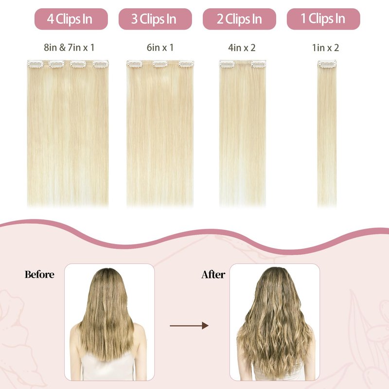 - 【Quick Wear & Long Lasting Wear】Clips are sewed stably, covered with a layer of soft rubber to carefully protect your scalp and hair. You can easily apply and remove it by yourself to change hairstyle for different occasions, like wedding, parties, dating, etc. clip in hair extension can be restyled, strengthened, curled, dyed, etc.