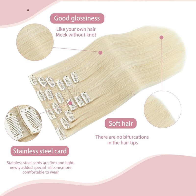 - 【HUAYI Hair Extensions Specification】HUAYI clip in extensions,Its color is platinum blonde,7 pieces 70g with 16 clips per set.Just to thicken your hair and for a full head, we suggest 1-2 sets.